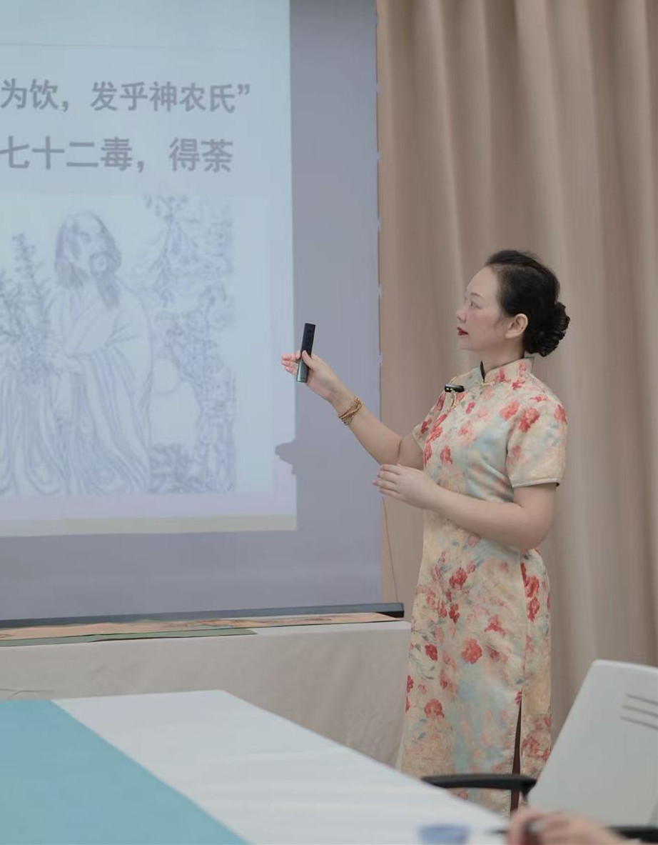 下午的课程由敖老师主讲《科学饮茶与健康》主要内容有茶叶利用的三大历史阶段,茶树叶片的其他组成部分,饮茶对健康的功效及如何科学饮茶。