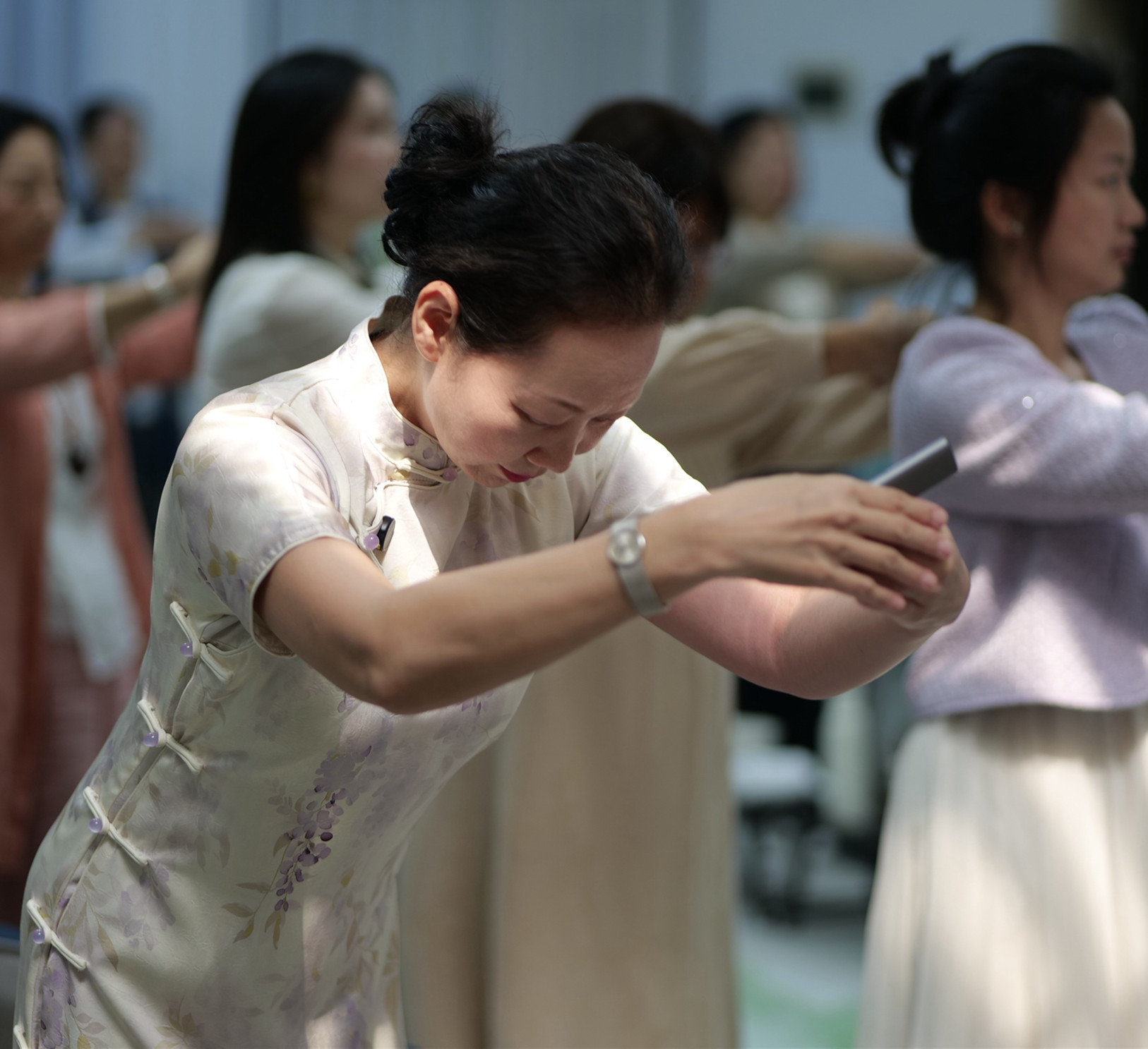 着妆要求:淡妆、盘发、茶服或旗袍